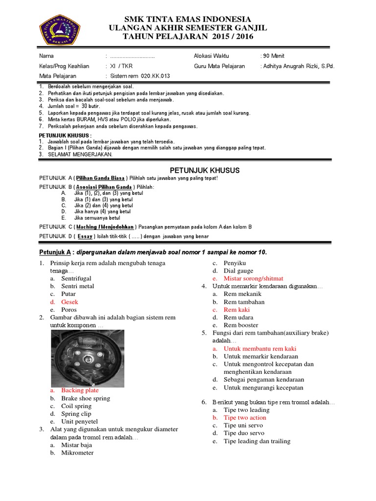 Soal Dan Jawaban Pemeliharaan Mesin Kendaraan Ringan Kelas 12 Cara Golden from 1.bp.blogspot.com Maybe you would like to learn more about one of these? Check spelling or type a new query. We did not find results for: Soal dan jawaban chasis tkr kelas 12 semester 1.