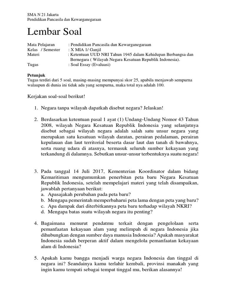 Soal essay tentang negara kesatuan republik indonesia nkri 1.