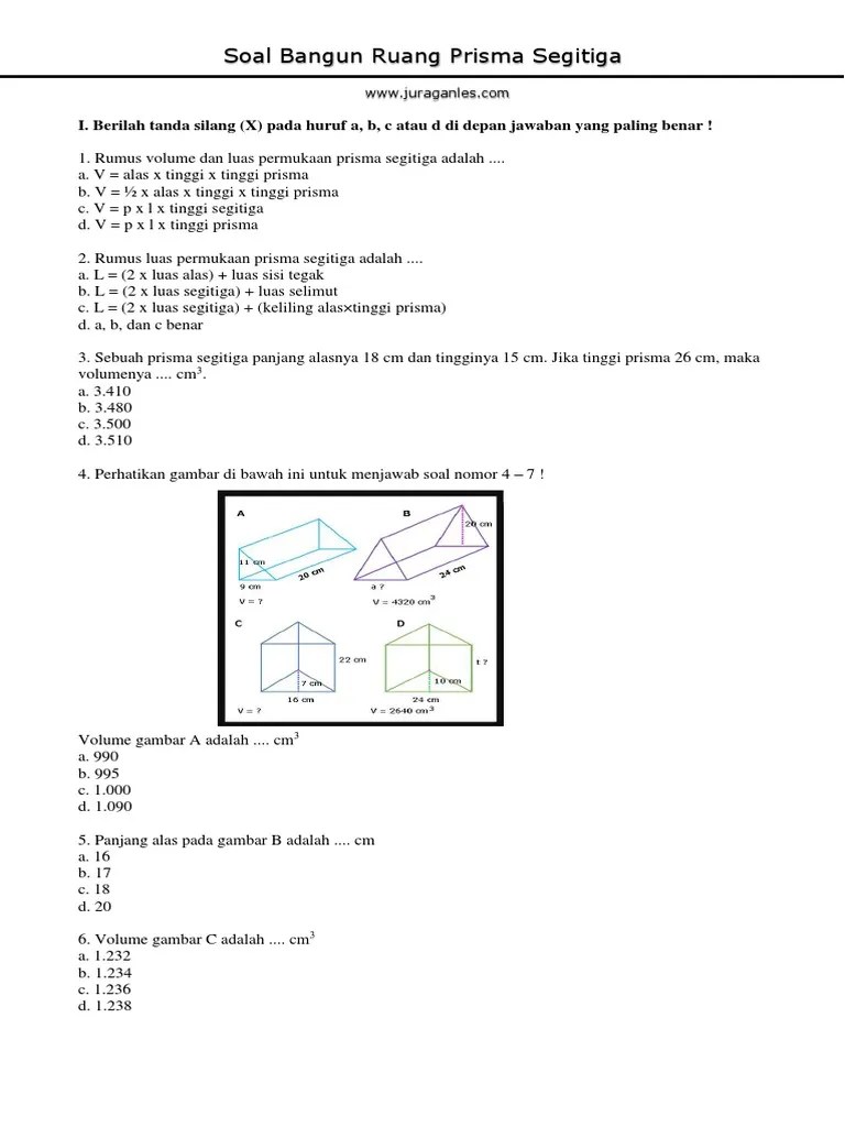 Setiap prisma berbeda sehingga rumus untuk mencari luas alas prisma juga rumus prisma tegak segitiga. Maka volume prisma tegak segitiga .